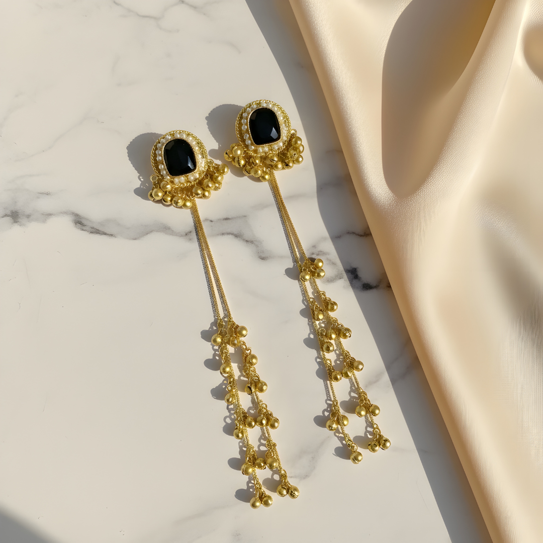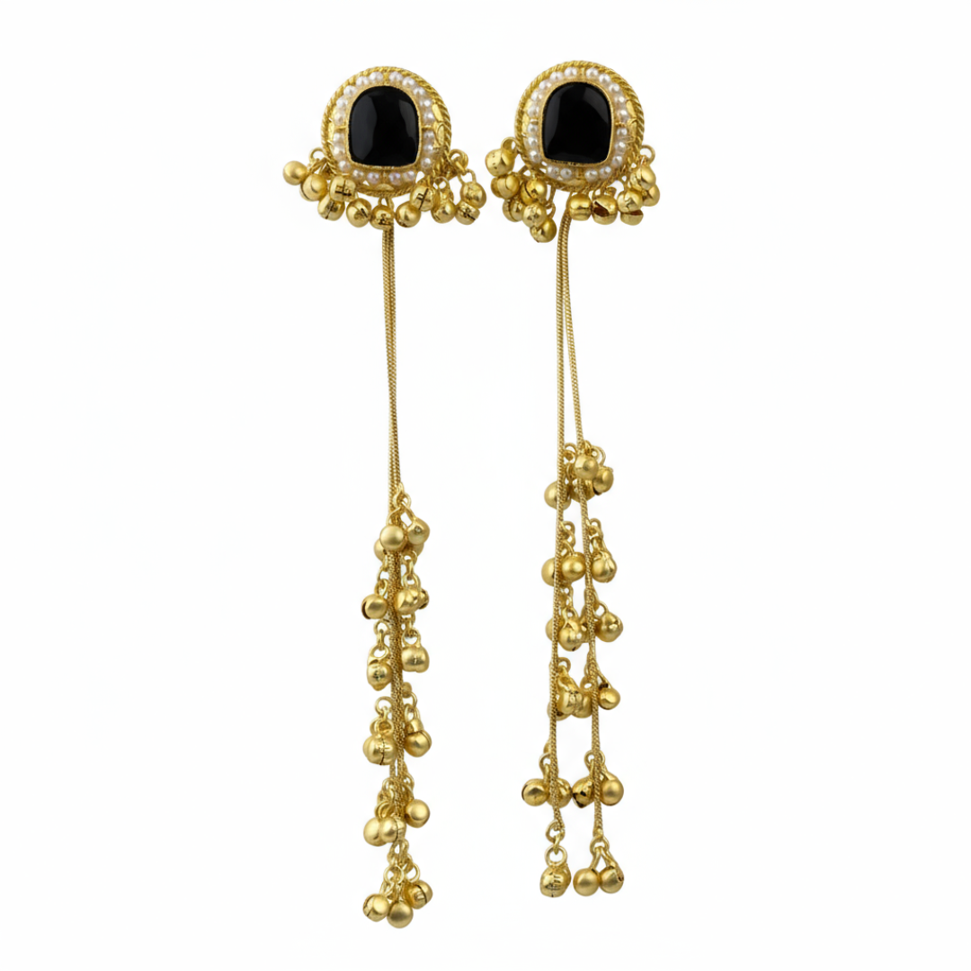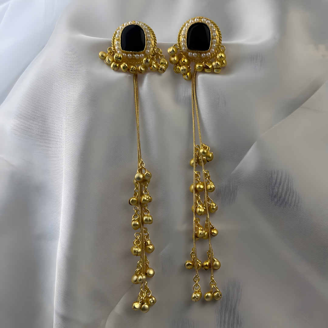 Add a touch of traditional charm to your look with these Kashmiri Ghungharoo Earrings. Beautifully handcrafted by skilled artisans, these earrings feature delicate ghungharoos that create a soft musical jingle with every movement. Inspired by Kashmiri tribal jewelry, this pair blends ethnic heritage with timeless elegance, making it perfect for festive styling, or special occasions.
