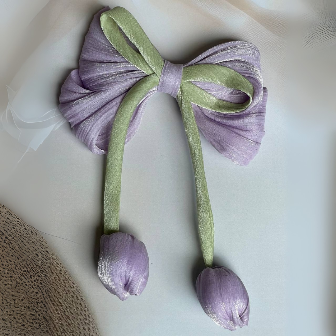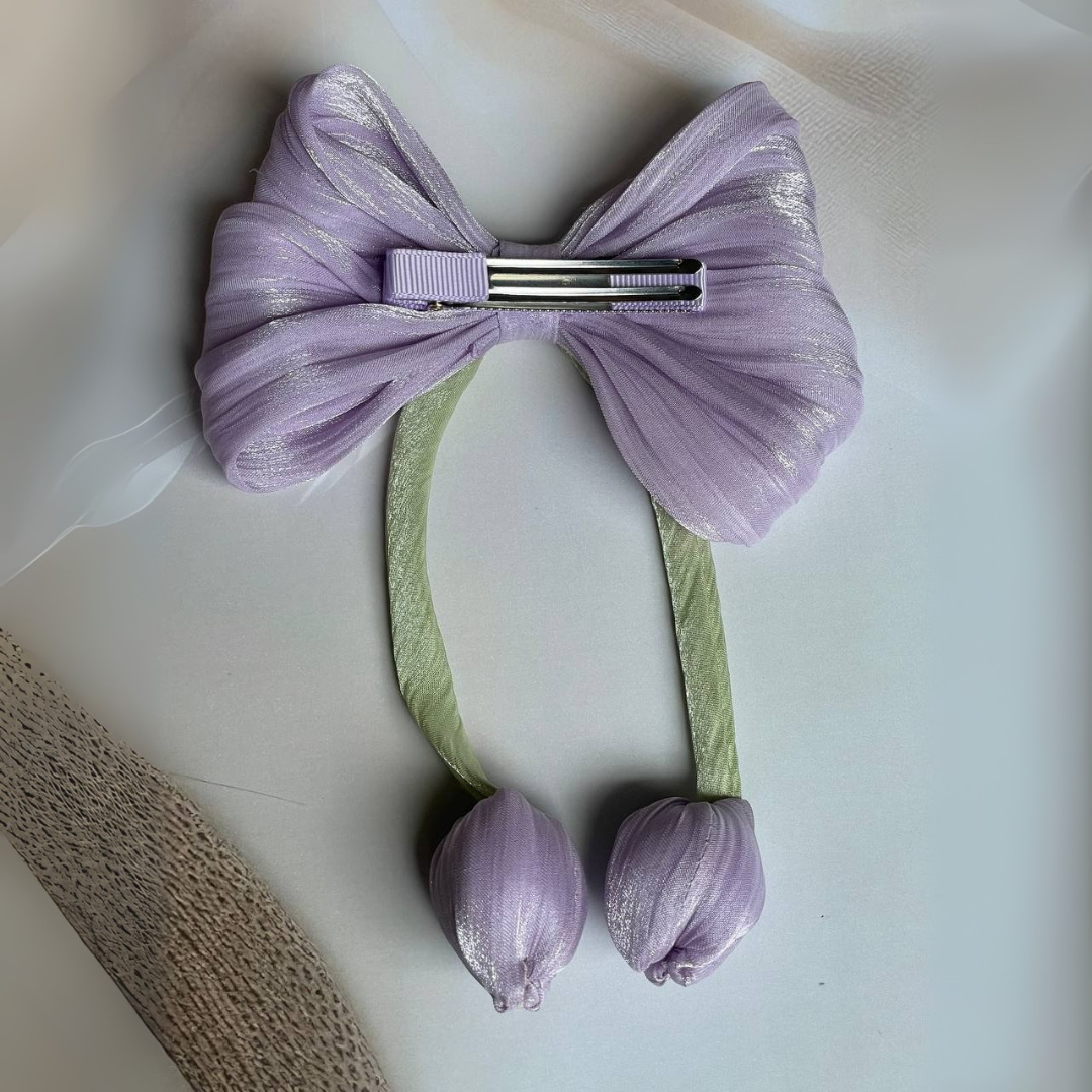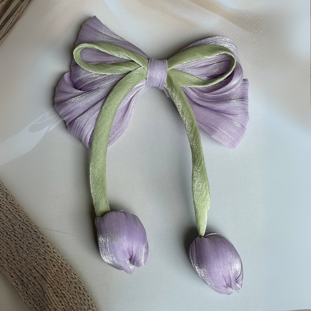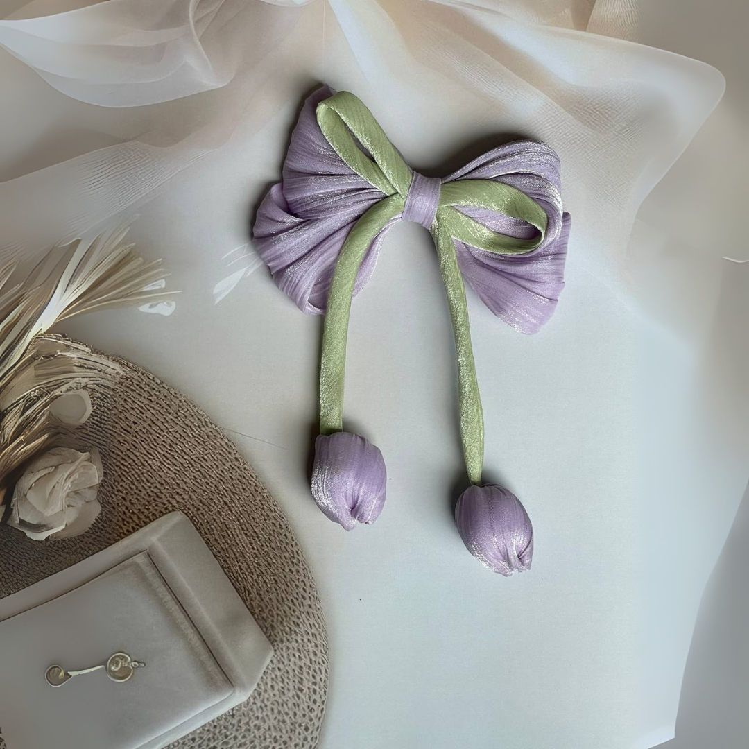 Tulip Korean-Inspired Hair Accessory – Elegant Bow Clip with Hanging Tulip Aesthetic Hair Clip (Lavender)